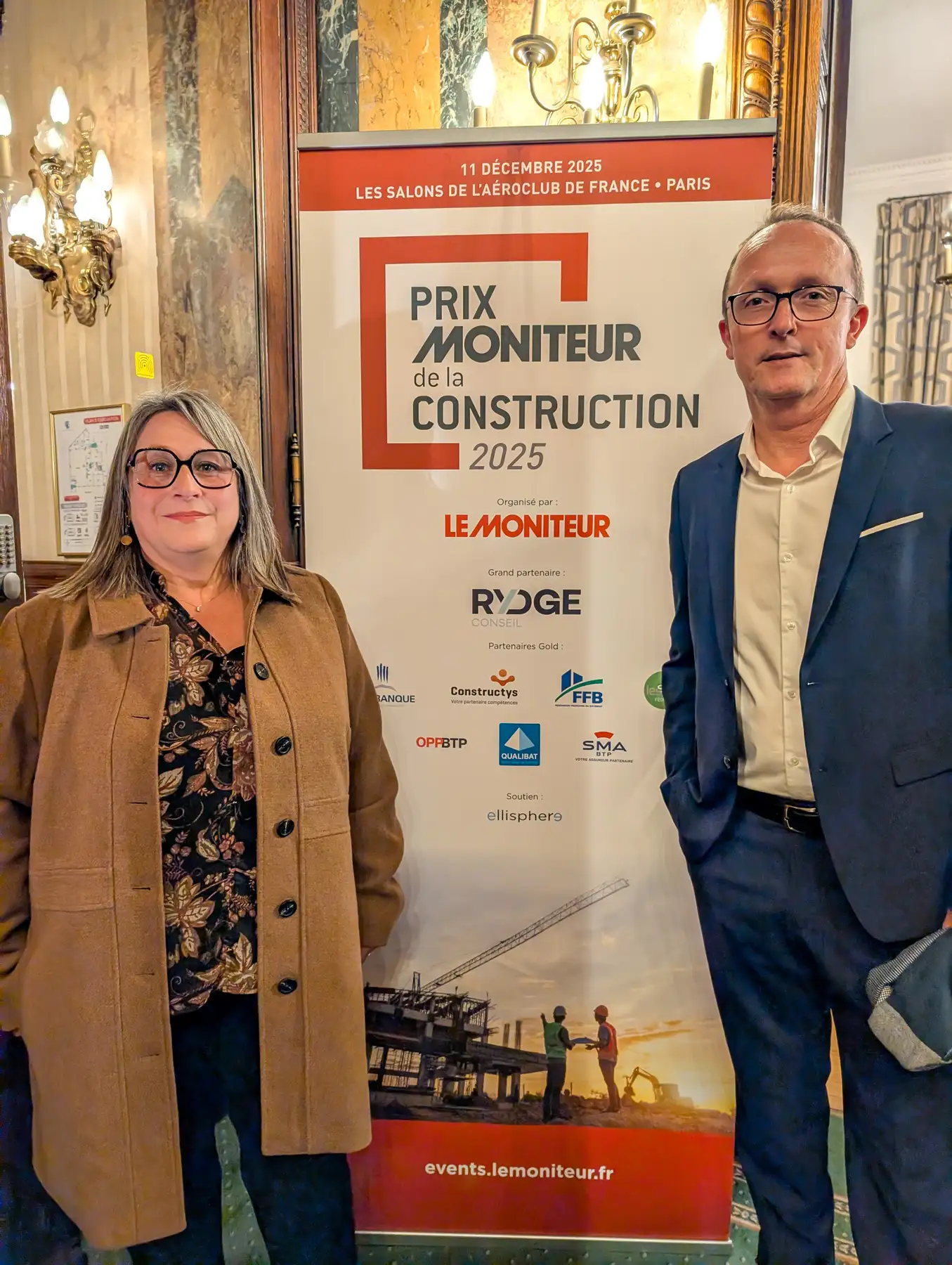 Le jeudi 11 décembre 2025, les Bâtisseurs Challandais ont eu l’honneur de recevoir le trophée régional dans la catégorie « Clos & Couvert » lors de la 24e édition des Prix Moniteur de la Construction. Cette cérémonie prestigieuse s’est tenue dans les Salons de l’Aéro-Club de France à Paris, rassemblant les acteurs majeurs du secteur de la construction.