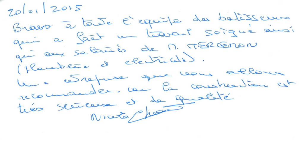 Bravo à toute l’équipe des Bâtisseurs qui a fait un travail soigné ainsi qu’aux salariés de M. Merceron (plomberie et électricité).