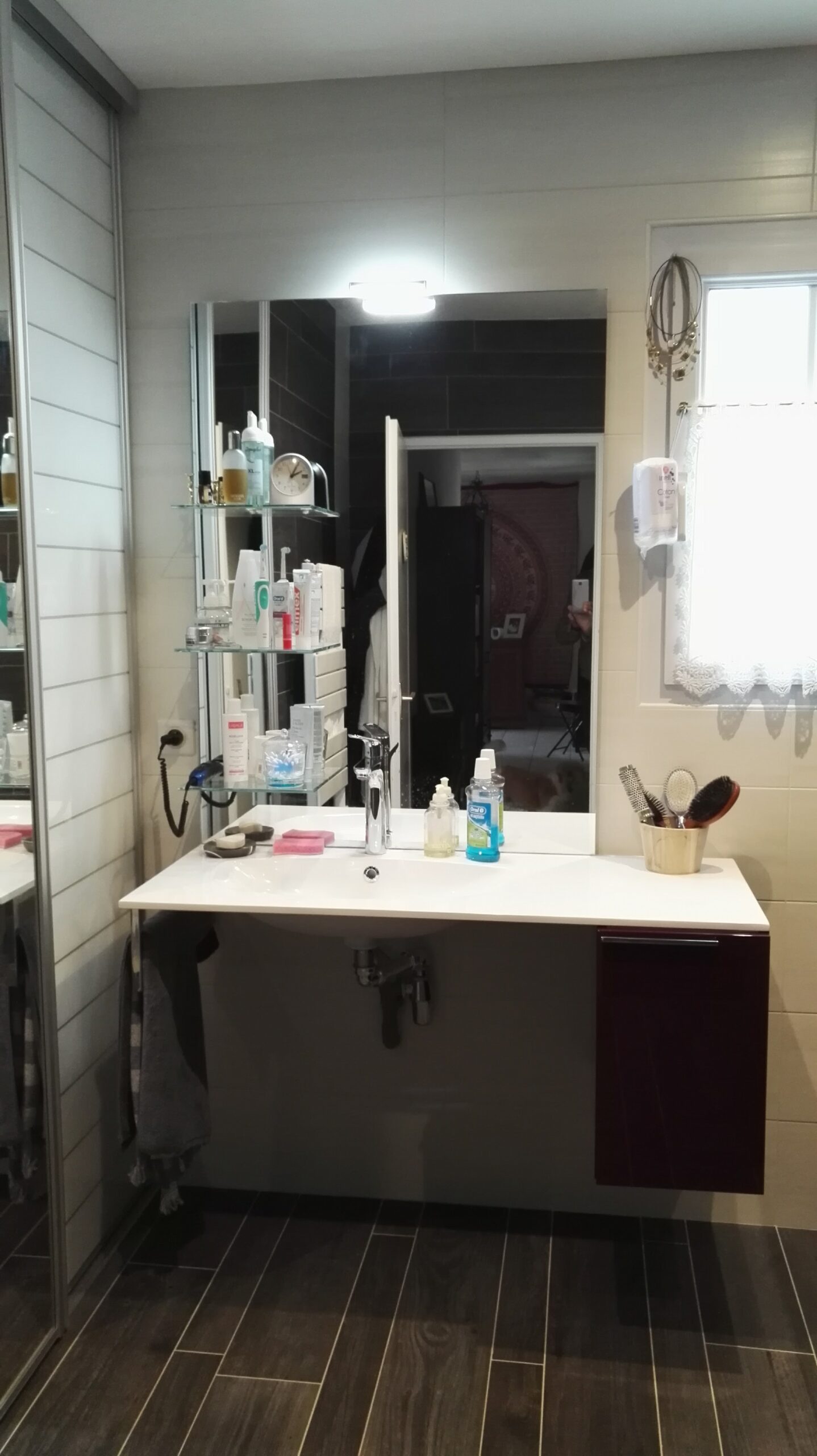 Même si nous avions déjà une idée assez précise des travaux que nous souhaitions réaliser, les Bâtisseurs Challandais ont su nous écouter, nous conseiller et nous aiguiller tout au long du chantier. Ils ont fait office de maître d’œuvre sur l’ensemble du projet et ont piloté les différents corps de métier : du plombier au carreleur, en passant par le peintre. L’équipe a été très attentive à ce que nous soyons satisfaits du résultat. Ils n’ont d’ailleurs pas hésité à revenir pour ajuster la hauteur de la vasque.